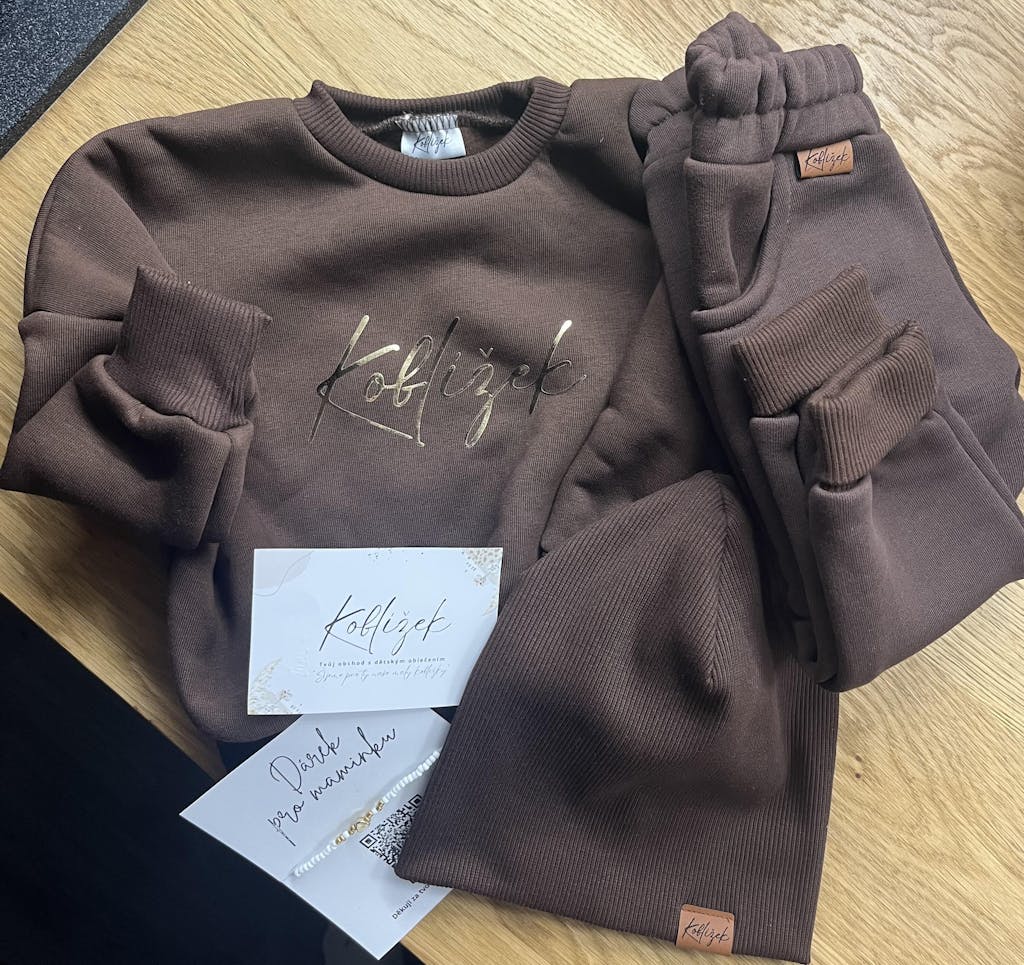 Dnes nám od Vás přišla tepláková souprava s čepičkou pro našeho syna. Nejenže bylo vše krásně a s úžasnou vůní zabaleno, ale balíček v sobě ukrýval i dárek pro maminku, jako bonus navíc. Je vidět, že svou práci děláte od srdce a s radostí pro zákazníky, děkujeme :)